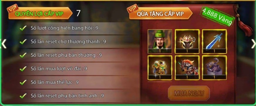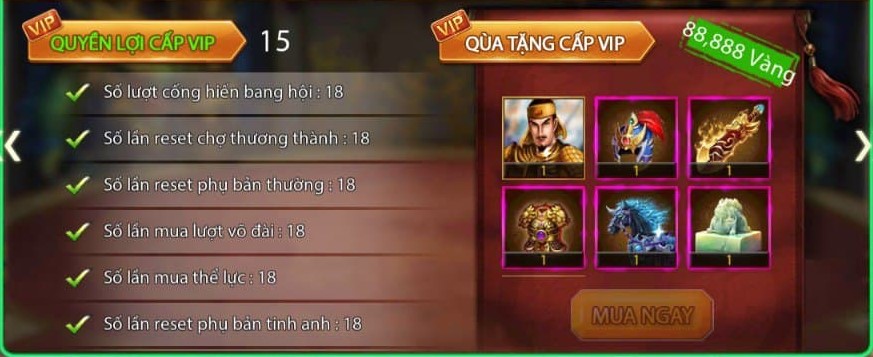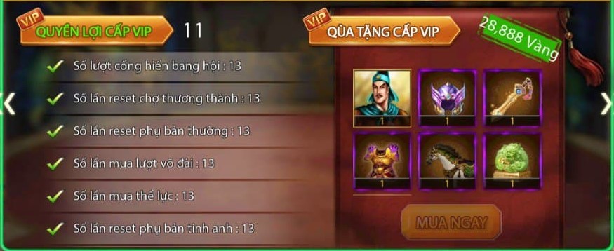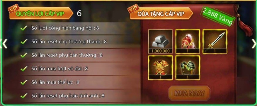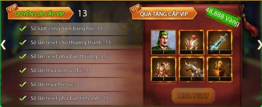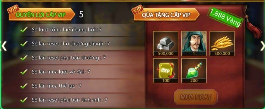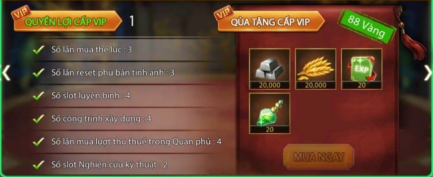 Chúa Công hãy tận dụng tối đa đặc quyền VIP để tăng sức mạnh và lực chiến nhé.