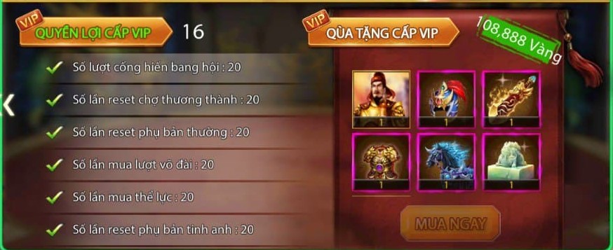 Quyền lợi VIP 16 và quà tặng Vip 16