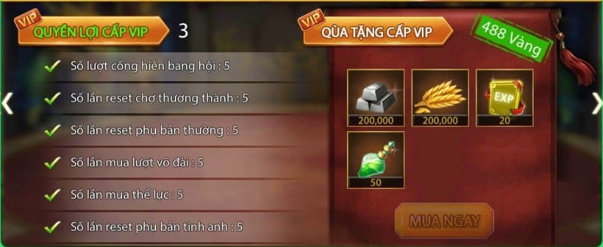 Quyền lợi VIP 3 và quà tặng Vip 3