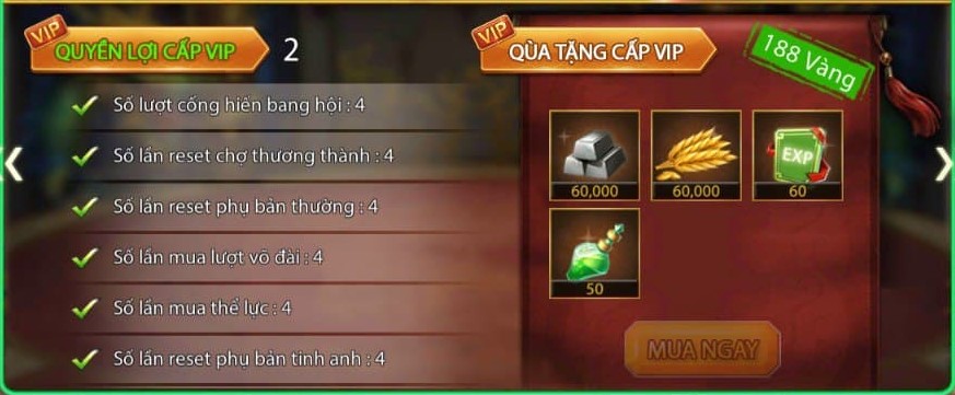 Quyền lợi VIP 2 và quà tặng Vip 2
