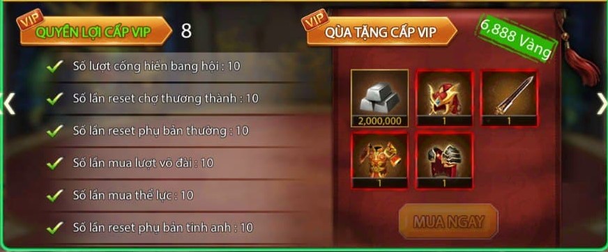 Quyền lợi VIP 8 và quà tặng Vip 8