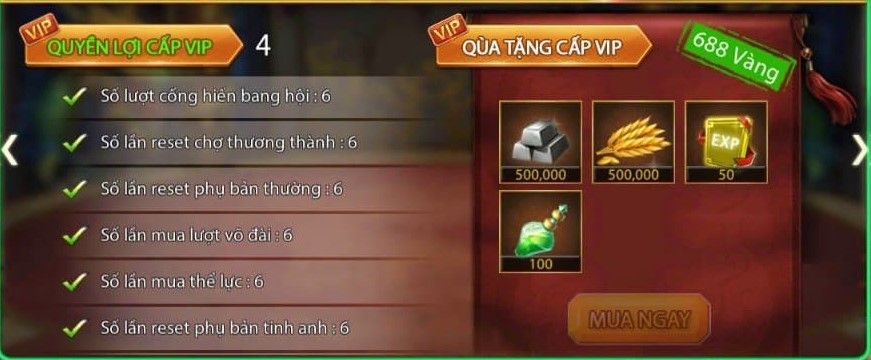 Quyền lợi VIP 4 và quà tặng Vip 4