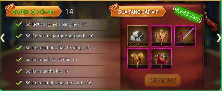 Tích nạp 2500000 Vàng trở thành VIP 14