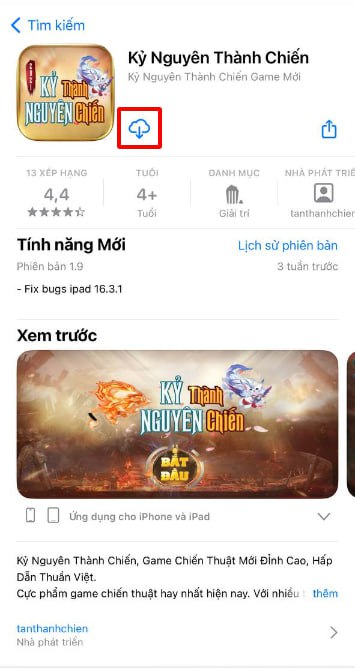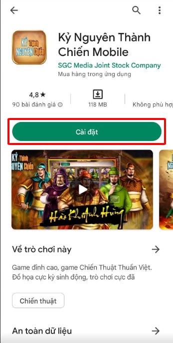 Bước 2: Nhấn cài đặt để tải game về điện thoại từ kho ứng dụng CH Play và App Store.