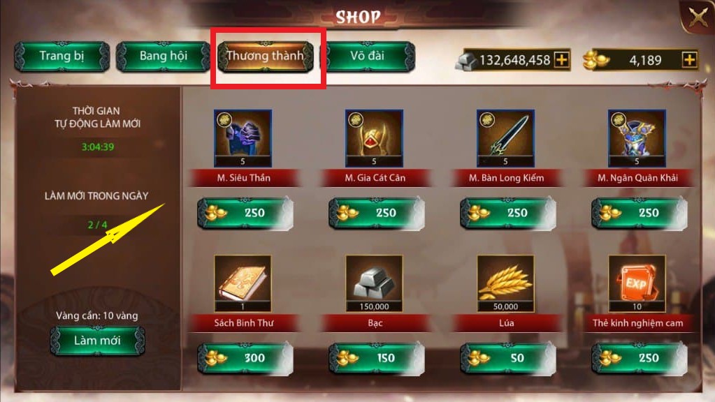 - Người chơi có thể làm mới Shop Thương thành để đổi nhiều vật phẩm khác nhau trong shop.