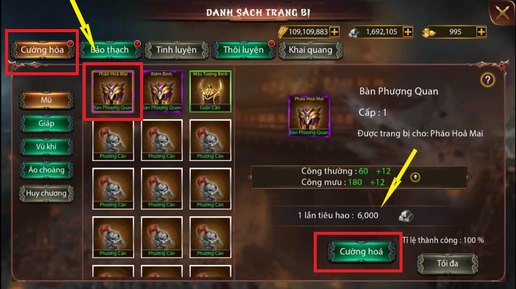 * Chi tiết cường hóa trang bi Binh chủng xem tại đây