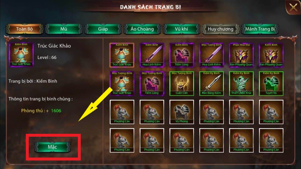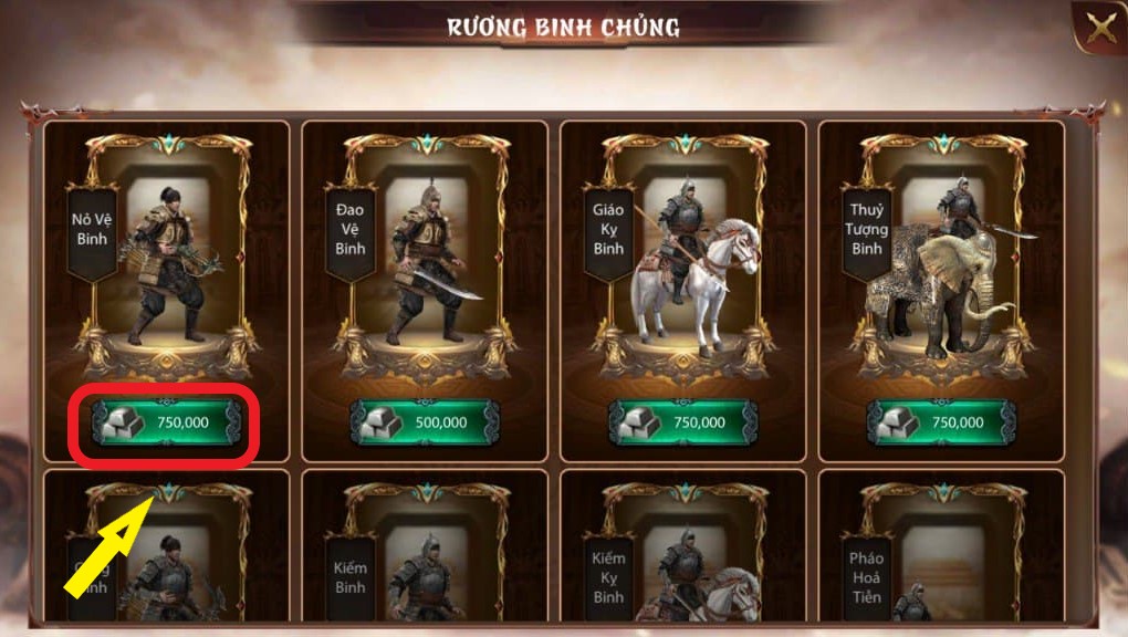 Để gia tăng sức mạnh của Binh chủng, có thể gắn thêm trang bị cho Binh chủng đó.