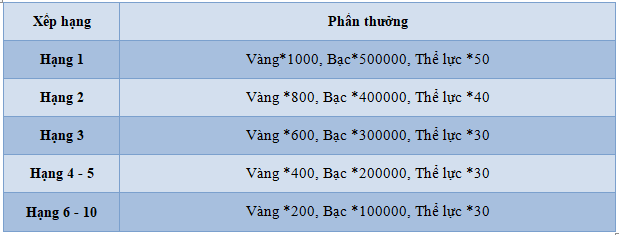 Nội dung: người chơi đua top tiêu bạc nhận thưởng theo xếp hạng.