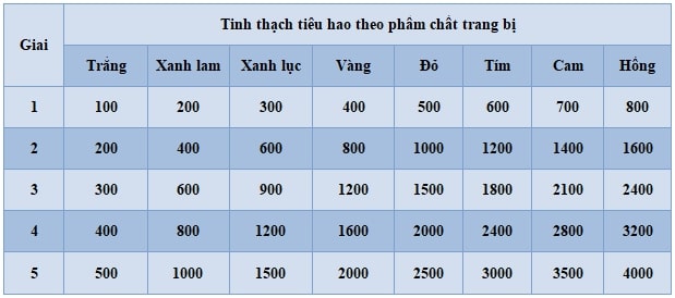 Thông Tin Tinh Thạch Cần Để Tiến Giai Trang Bị Tướng