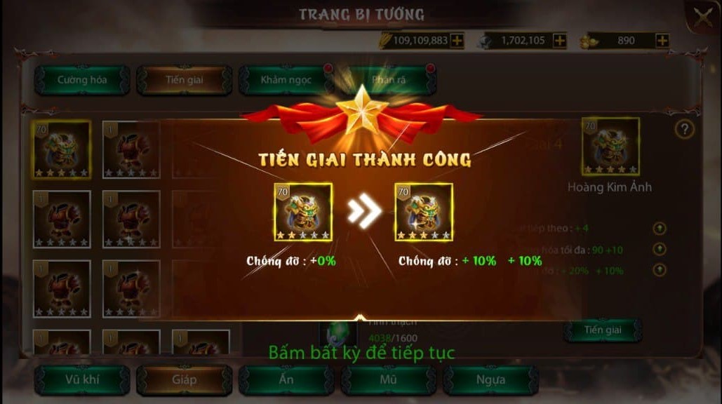Tiến Giai Trang Bị Tướng Thành Công
